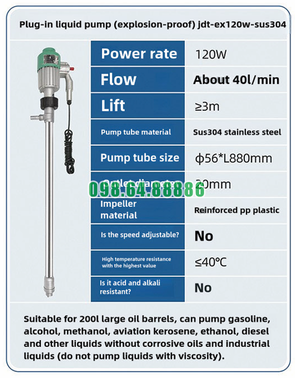 Lịch trình bảo dưỡng định kỳ cho Bơm chất lỏng cắm điện chống cháy nổ JDT-EX120W-SUS304 là yếu tố quan trọng giúp thiết bị luôn hoạt động ổn định, kéo dài tuổi thọ và đảm bảo an toàn khi làm việc với các chất lỏng dễ cháy. Việc bảo dưỡng đúng thời điểm giúp phát hiện sớm hư hỏng và hạn chế rủi ro trong quá trình vận hành.