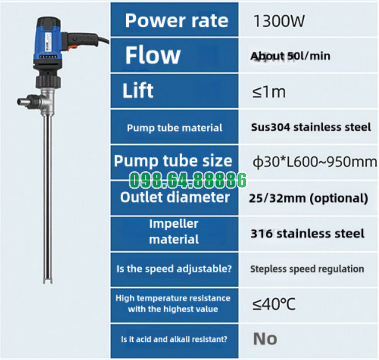 Bơm thùng phuy JDT-1300W-30 SUS304 dùng cho việc chuyển dung môi hữu cơ