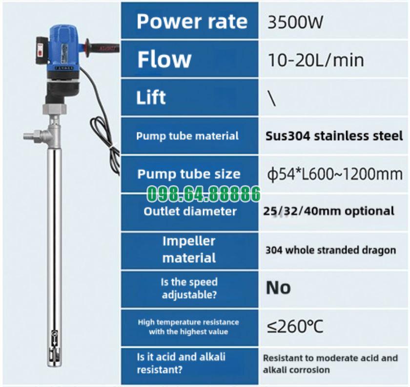 Bơm điện hút phuy dạng trục đứng JDT-3500W-JLG260