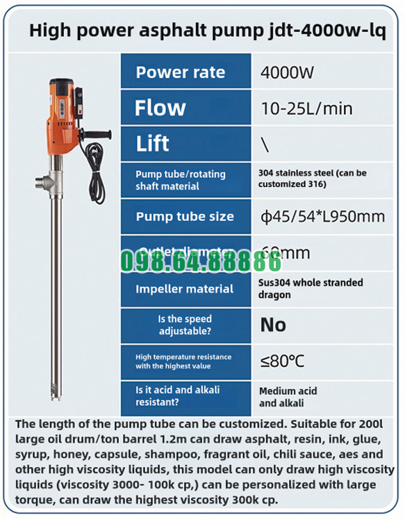 Bơm điện hút chất đặc từ thùng phuy JDT-4000W-LQ là dòng máy chuyên dùng cho chất lỏng có độ nhớt cao, vì vậy việc bảo trì định kỳ rất quan trọng để giữ cho máy vận hành ổn định, hạn chế hư hỏng và kéo dài tuổi thọ thiết bị. Với những môi chất như nhựa đường, keo, resin, mực in hay siro đặc, nếu không vệ sinh và kiểm tra thường xuyên, cặn bám và áp lực làm việc lớn có thể ảnh hưởng trực tiếp đến hiệu quả bơm.