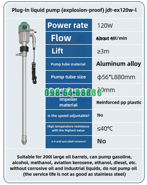 Máy bơm chất lỏng cầm tay chống cháy nổ JDT-EX120W-L nổi bật với thiết kế nhỏ gọn, tối ưu cho nhu cầu sử dụng linh hoạt trong nhiều môi trường khác nhau. Đây là yếu tố quan trọng giúp thiết bị trở thành lựa chọn tiện lợi cho cả công nghiệp và dân dụng.