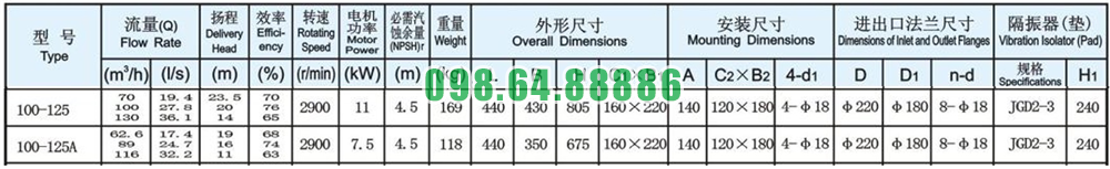 Máy bơm trục thẳng đứng, inline, bơm trục đứng ISG100-125, IRG100-125 11kw, 100m3, 20m
