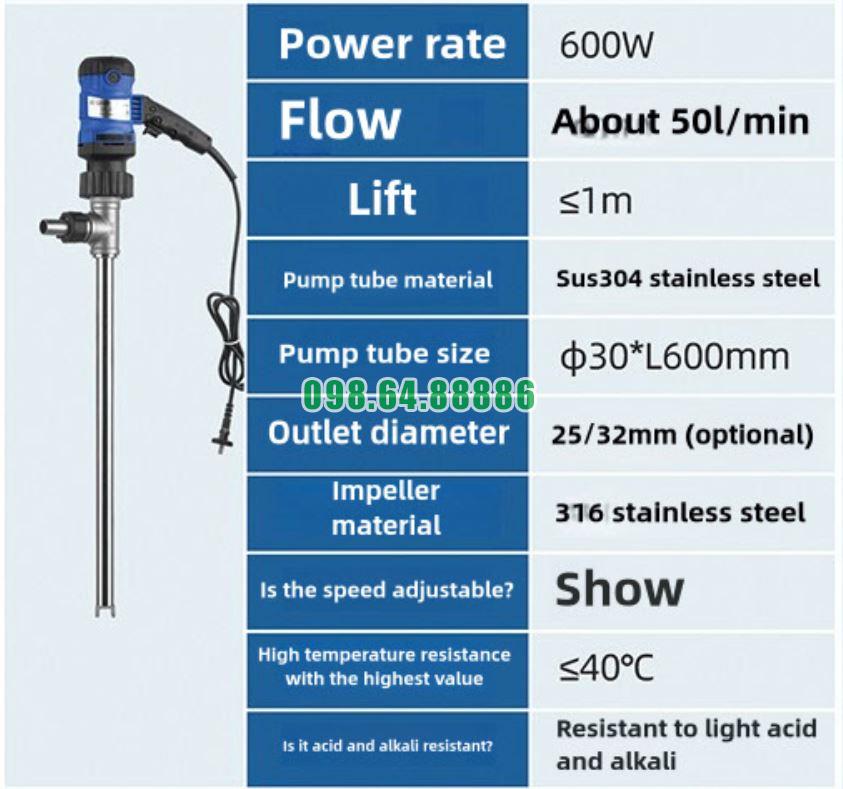 Bơm thùng phuy ống inox SUS304 JDT-600W là lựa chọn phù hợp nhờ vào:
