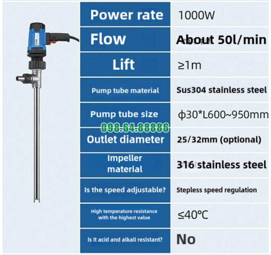 Bơm dầu thùng phuy mini JDT-1000W-30SUS304