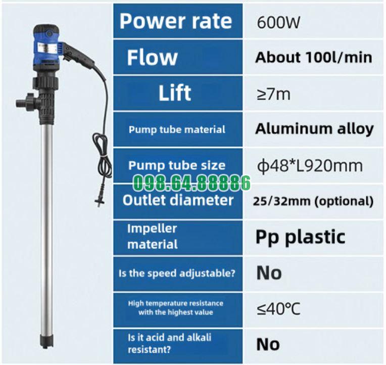Máy bơm thùng phuy điện model JDT-L92-600W sở hữu nhiều ưu điểm về tuổi thọ và độ bền nhờ vật liệu chống ăn mòn, động cơ bền bỉ, hệ thống làm kín chất lượng cao và thiết kế tối ưu cho môi trường công nghiệp. Các đặc tính này giúp máy hoạt động ổn định trong thời gian dài, giảm chi phí vận hành và đảm bảo an toàn tuyệt đối cho người sử dụng. Đây là lựa chọn đáng tin cậy cho doanh nghiệp cần thiết bị bơm mạnh – bền – tiết kiệm.